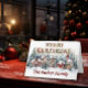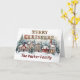 A Merry Christmas card that is comprised of multiple letters designed to mimic Victorian illustrations, atop a quaint village setting.
