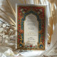 This opulent Victorian-inspired wedding invitation features an elaborate border adorned with red roses, white daisies, and intricate golden filigree. The deep red and royal blue panels create a striking contrast against the cream background, adding to the vintage elegance of the design. The ornate detailing and lush floral arrangements make this invitation ideal for couples seeking a regal and sophisticated wedding stationery that exudes timeless charm.