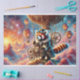 Witness a dapper red panda adventuring through a mesmerising steampunk landscape of floating balloons and mechanical marvels. Intricate brass instruments, vintage clockwork, and gothic-inspired elements dance around the central character. Rich, luminous colours blend with metallic textures to bring this fantastical scene to life. Every detail whispers stories of imagination and technological magic. Transform your craft projects with this extraordinary artistic vision.