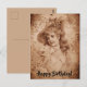 Victorian Woman in Hat Flowers Sepia Monochrome Postcard