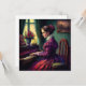 Victorian woman playing the piano, oil painting invitation