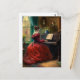Victorian woman playing the piano, oil painting postcard