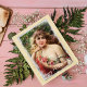 Send this beautiful Mother's Day card with a distressed classical romantic image of a woman holding pink roses.