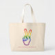 Victory Sign Gay Love Rainbow Text LGBT Pride Large Tote Bag