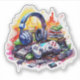 Ai watercolor illustration of headphones, video game controller, comic books and other gaming accessories. Stick on your notebook, cell phone or water bottle.
