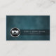 This simple and dark themed video editor business card features a chrome icon of a video clip enclosed within a chrome circle. Your business name and text/tagline appear within a black text panel strip that runs from the icon from the left towards the right edge of the card. The background of the card consists of a dark themed grunge pattern. Your contact details appear on the lower left on the back of the card. Perfect for photography, imaging, video, filming, professional, impact, dark themes.