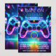 Video game-inspired birthday invitation, level up, birthday invitation, call a game center, neon invitation, glow-in-the-dark video game player