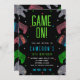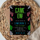 Level up your party planning with this fun video game birthday invitation, designed in bold red, green, blue, and orange with playful pixel details and game controller graphics. Featuring a modern computer-style font, this vibrant design sets the tone for an exciting gamer-themed celebration. Professionally printed and fully customizable with your party details, it’s perfect for kids, teens, and gaming fans of all ages.