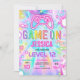 Video Game Birthday Party Neon Game On Level Up Invitation