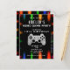 Video Game Party Controller Neon Gaming Birthday Invitation. Gaming controller on a vivid colourful neon lights on a black background.