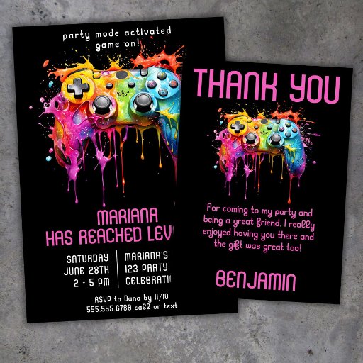 Video Game Birthday Party Invitation Suite in PinkDesigned by Denise Witmer