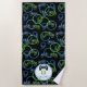 Video Game Neon Blue & Green Pattern Monogram Beach Towel