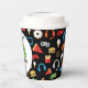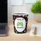 Video Game Party Level Up Kids Birthday Gamer Paper Cups. Add name and age to level up on these gamer party supplies. Fun pattern of video games and snacks on black background. Gamer party for kids. www.SamAnnDesigns.com