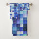 Video Game Pixels Blue Square Pattern Bath Towel Set