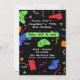 Multi colour game controllers with custom background kids party invitation. Original illustration by Becky Nimoy