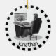 Video Gaming Ornament with black and white outer ring frame and customisable text on front and back,
