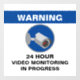 Window cling sign for small business. Blue 24 hour video camera surveillance sign for business security and theft deterrent.