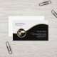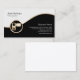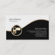 This videographer business card features black and white segments separated by a wavy gold strip. An elegant gold icon of a video camera lies on the lower left side of the design, that's generally suitable for businesses or professions related to photography, camera, visual, entertainment, digital imaging, creative arts themes.