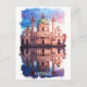 Stylish retro Vienna Austria watercolor painting on a postcard showing the unique architecture and landmarks of the austrian capital and the Karlskirche. Makes a great souvenir and gift idea for every tourist.