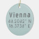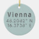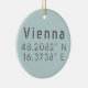Ceramic ornament with Vienna Austria latitude and longitude map coordinates in modern urban font