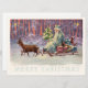Merry Christmas from Vienna Woods! Santa’s small sleigh is pulled through a snowy forest by two delicate reindeer. The scene is aglow with lights from the little travelling Christmas tree. Coral, lavender and aqua colours in an abstract pattern create a wonderful theatrical background. This antique European illustration has gracefully travelled through time to decorate our twenty first century Christmas correspondence and gifts. The trendy colours and unique image are perfect for your holiday events.
