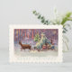 Merry Christmas from Vienna Woods! Santa’s small sleigh is pulled through a snowy forest by two delicate reindeer. The scene is aglow with lights from the little travelling Christmas tree. Coral, lavender and aqua colours in an abstract pattern create a wonderful theatrical background. This antique European illustration has gracefully travelled through time to decorate our twenty first century Christmas correspondence and gifts. The trendy colours and unique image are perfect for your holiday events.