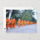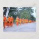 Buddhist monks walk single file around the town Vientiane, Laos. The towns people give them food and in return the monks pray for them.