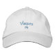 Vieques Puerto Rico hat or baseball cap with embroidered name of the town of Vieques and the initials PR for Puerto Rico. You can customise to other colours, styles and fonts or use as a template and just update the town name with your own text, as well as the PR initials.