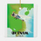 Vietnam by Air vintage map flight travel poster cartoon of a retro prop aircraft flying over the asian nation.