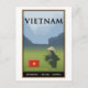 Beautiful travel image of Vietnam depicting a rice farmer in the field set against towering blue mountains.