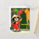 Vietnam travel postcard with girl in non la hat and Ao Dai.