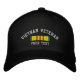 US Military Vietnam Service ribbon with Vietnam Veteran above and text below. Both lines of text can be changed. Thread outside of ribbon can be changed to match hat colour.