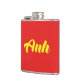 Well made flask, a little better than I had expected. Flask came in clear plastic box which gave it a nice presentation when I took it out of the zazzle packaging. Image is not printed on flask but on sticker. Don't know how this will hold up I haven't used it yet. This would make a Great gift! I plan to purchase more for friends! Cheers. I thought a little brighter than computer. Very crisp, writing wasn't
