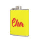Well made flask, a little better than I had expected. Flask came in clear plastic box which gave it a nice presentation when I took it out of the zazzle packaging. Image is not printed on flask but on sticker. Don't know how this will hold up I haven't used it yet. This would make a Great gift! I plan to purchase more for friends! Cheers. I thought a little brighter than computer. Very crisp, writing wasn't