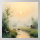 Inspired by authentic Vietnamese village scenes, this artwork captures the calm rhythm of dawn: bamboo standing silently, a small stream reflecting pale golden light, and the tender stillness of a new day beginning.