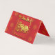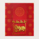 Golden Asian Paper-cut of an Ox into a square with the same design in black to create drop shadow. Design on vertical greeting card with golden wishes in Vietnamese + traditional pattern in red as background (front and inside the card). Matching greeting card, Holidays postcard, invitation, craft supplies, party supplies and more... Perfect for Chinese or Vietnamese New Year of the Ox 2021.