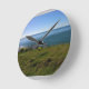 The clock did not take as long to arrive as I thought it might and was extremely well packaged. I didn't do the measurements so I didn't realize it is a little smaller than the average clock but that does not matter (just make sure you check if that's important to you).It is really nifty! It seems very solid and well made not flimsy at all. It has been going well and has kept good time in its few weeks on my wall. Nice product. Gets noticed too! Nicer in real life than the picture but true to the picture