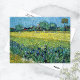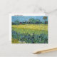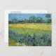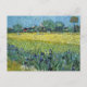 A postcard with the painting, View of Arles with Irises (1888) by the Dutch artist Vincent van Gogh (1853-1890) A lovely landscape of wheat fields next to a grass meadow and a row of iris flowers in the foreground.