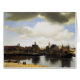 View of Delft by Johannes Vermeer, oil on canvas 1659, is a landscape painting of a panoramic view of the river and buildings of the painter’s home city under a sweeping cloudy sky. View of Delft is one of Vermeer’s largest and most ambitious compositions that translates his concerns of light and colour onto the external landscape. The city, shadowed by passing clouds, is reflected in the rippling water, as the small foreground figures set the epic scale of the painting.
