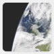 View of Earth from space showing phytoplankton bloom between Iceland and the United Kingdom featured with semicircle.