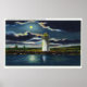 View of Lake Cobbosseecontee Lighthouse at Night Poster