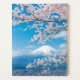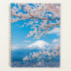 This photo features cherry blossoms in full bloom in the shadow of Mount Fuji.