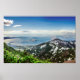 Painting of Croatian mountain landscape. View of sea and islands from Northern Velebit mountains in Croatia. Rocky mountains picturesque nature.