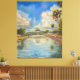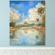 Acrylic painting artwork on canvas "View of the walking bridge from the lake" available on Zazzle as Premium Wrapped Canvas. This is Florida nature at Nalcrest community view from the lake. Walking bridge through the lake. Clouds on the Sky and reflection. Flags waving. This gorgeous scene I decided to paint on canvas. Original art available. Thank you!