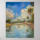 Acrylic painting artwork on canvas "View of the walking bridge from the lake" available on Zazzle as Value Poster Paper (Matte). This is Florida nature at Nalcrest community view from the lake. Walking bridge through the lake. Clouds on the Sky and reflection. Flags waving. This gorgeous scene I decided to paint on canvas. Original art available. Thank you!