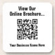QR Code Coasters to promote link to online catalogue, brochure, or website. View Online Brochure via QR Code. QR Coaster.