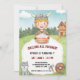 This cute invitation featuring a viking boy wearing a helmet and holding a birthday cake will set the stage for an epic party adventure.