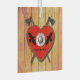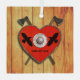 Crossed Viking axes behind a red, heart shaped shield. Two simple raven symbols also appear on the shield. The shield hangs on a bare wood plank wall. Add your own text on the shield.