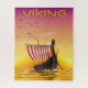 Viking longship sailing on the ocean or north sea during a beautiful sunset.