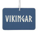 A slightly stylised image of a viking longship sailing at night under the Northern Lights there a couple of icebergs; most of the crew is asleep. Text reading "VIKINGAR" (Vikings) also appears.